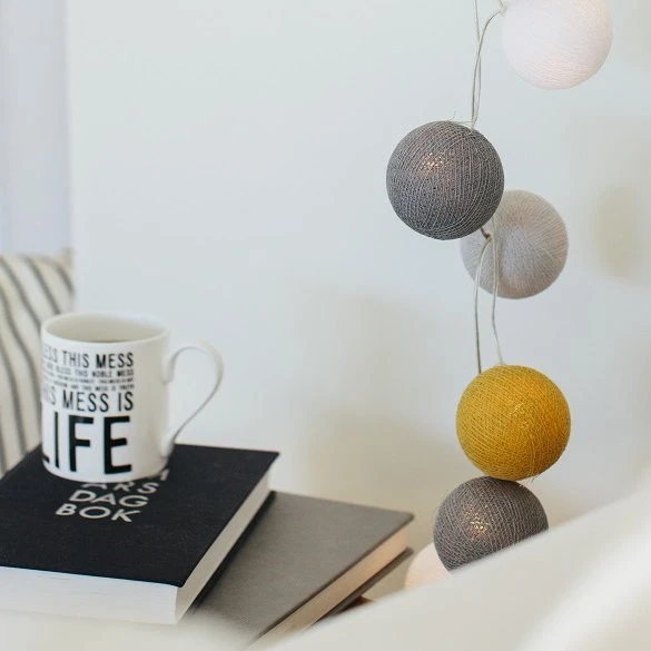 Eenvoudig meer kleur en sfeer toevoegen in uw interieur? Kies dan voor de Irislights Gotland! Het snoer bestaat uit LED-lampen met handgemaakte ballen in verschillende tinten grijs en mosterdgeel. Leuk voor bijvoorbeeld rond een spiegel, op een dressoir of in de vensterbank. Verkrijgbaar in verschillende kleuren!